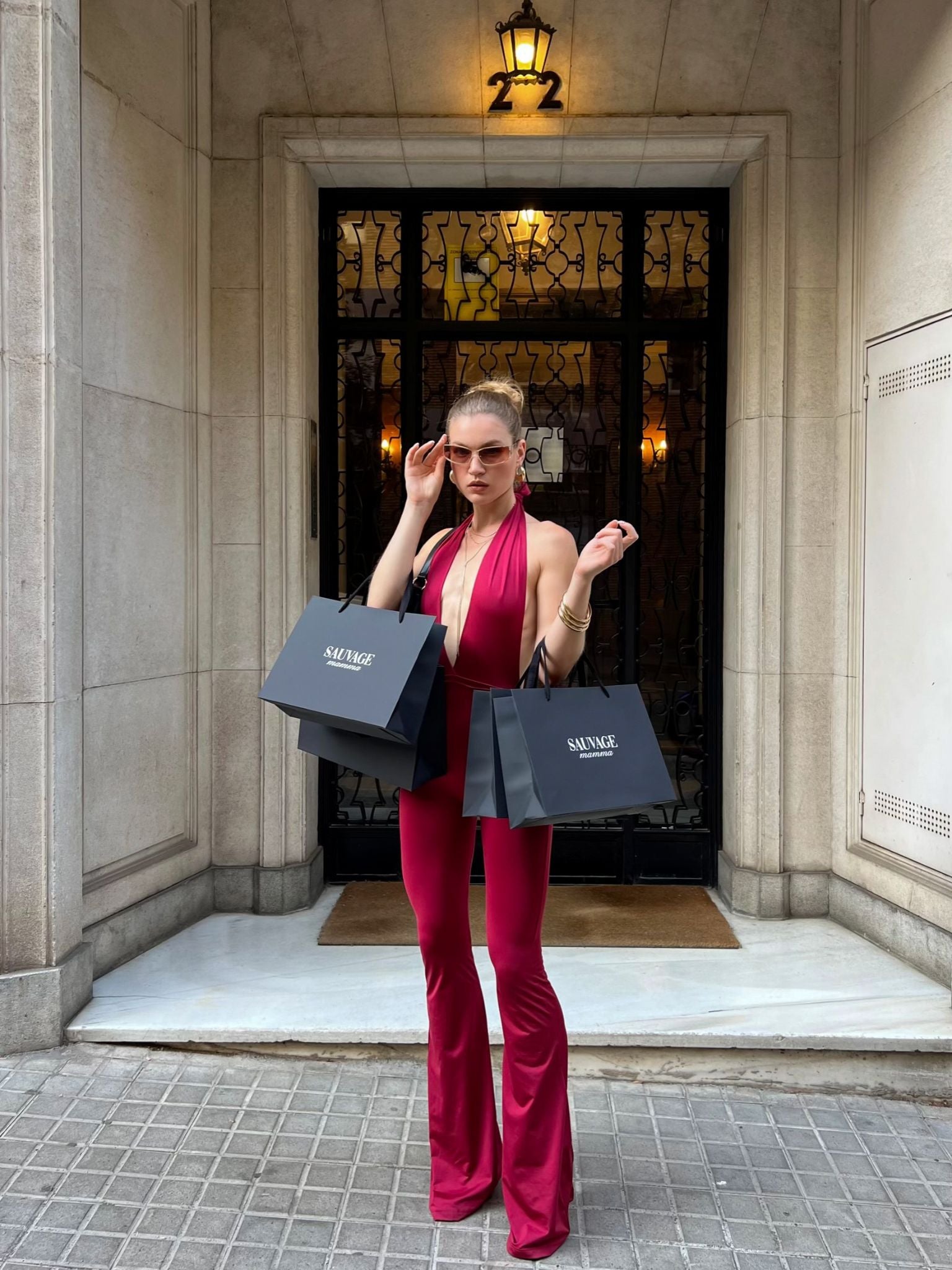 PANTALÓN CAMPANA AL ANDALUS BURGUNDY